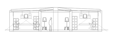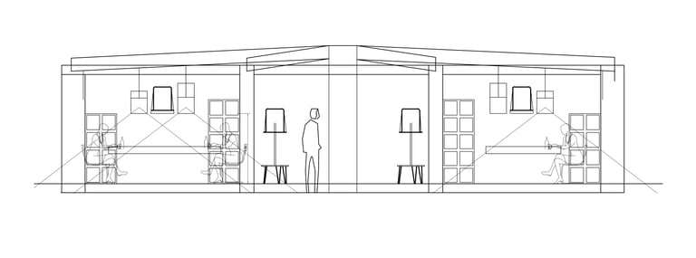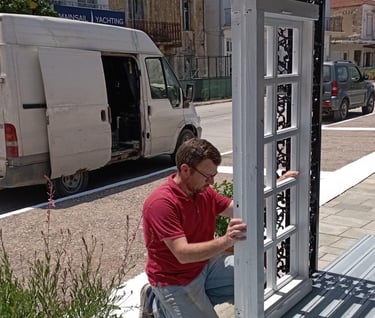 The white timber structures installed on the perimeter are actual second-hand window frames, extracted from recently renovated houses.